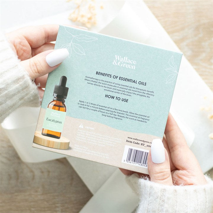 This abundance lava bead bracelet and essential oil gift set uses aromatherapy to enhance the metaphysical healing power of crystals. Crafted with natural amazonite and lava beads, the bracelet serves as a diffuser for the included eucalyptus oil, promoting calm and clarity. The addition of a four-leaf clover charm symbolises good luck, making it a perfect gift for anyone seeking abundance and good fortune. Crafted with durable materials and packaged in a luxury gift box, this elasticated bracelet combines beauty and functionality, offering a thoughtful present for various occasions.