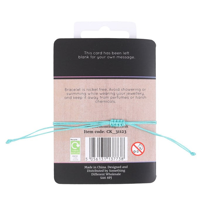 Balance and realign the heart chakra with this green string and metal charm bracelet. Presented on a matching backing card that reads, 'Love, compassion, empathy, foregiveness, change' Product Dimensions: H1.9cm x W2.4cm x D0.8cm Packaged Dimensions: H2.3cm x W13cm x D2cm