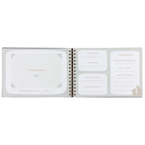 Record precious miletones and memories in this beautiful baby memory book. Prompts such as 'How Mummy and Daddy Met' and 'First Steps' help to write little ones story and spaces for pictures bring the story to life. Product Dimensions: H19cm x W28cm x D2cm Packaged Dimensions: H19cm x W28cm x D2cm