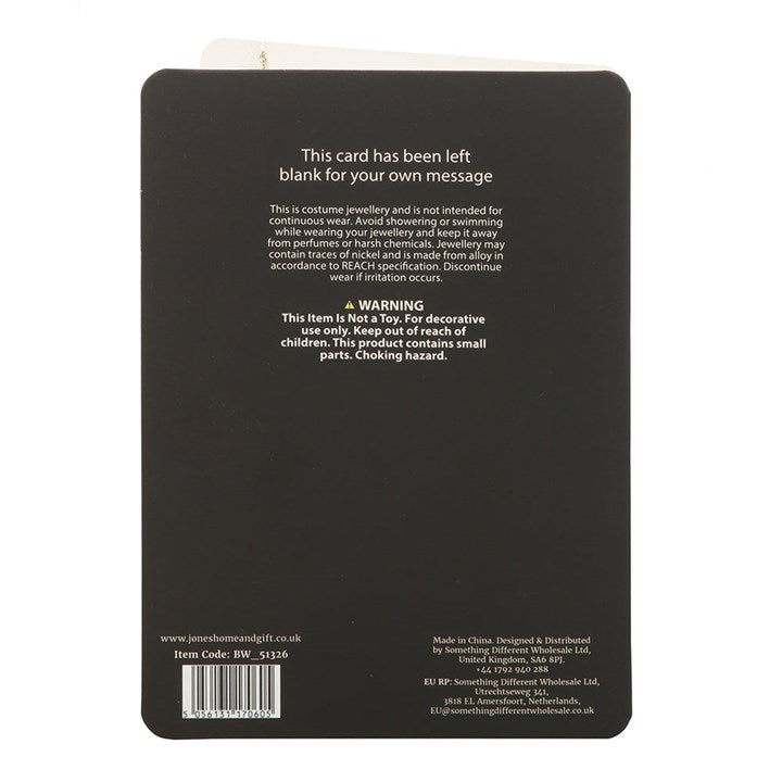 Reminiscent of vintage mixtapes, this gold-tone necklace celebrates the sounds of a bygone era, displayed on a matching greeting card with vivid smoke artwork. Includes matching envelope. Card left blank inside. Necklace made from alloy in accordance with REACH specification and may contain traces of nickel.