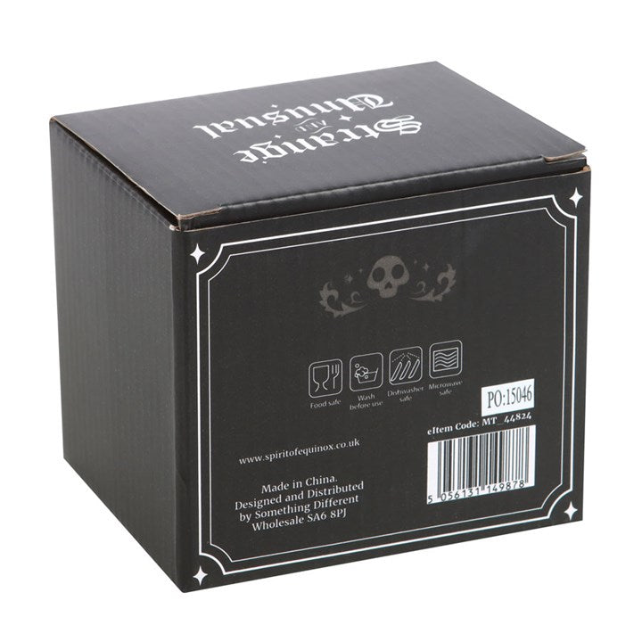 Summon a smile with every sip with this delightfully peculiar ceramic mug. Features 'Strange and Unusual' text written in gothic lettering that's perfect for showing off your dark side. 300ml capcity. Microwave safe.